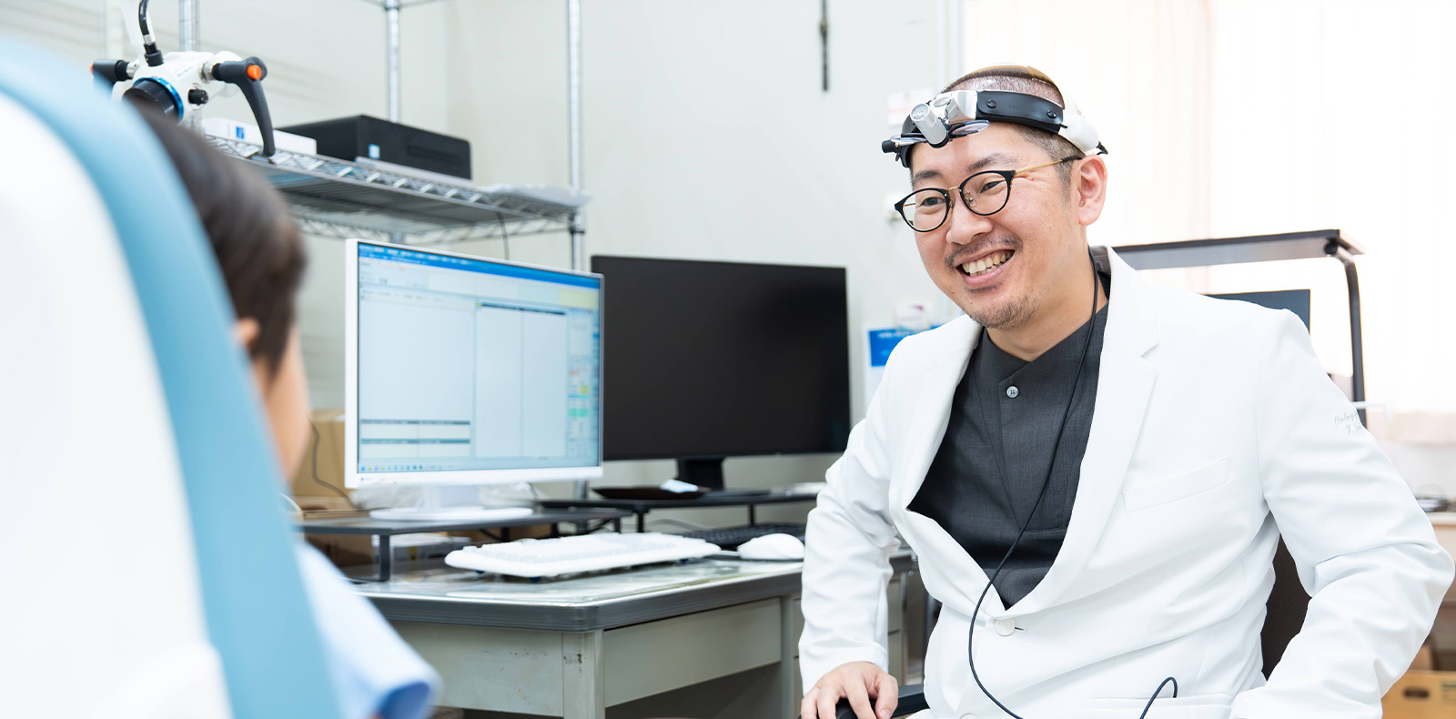 聴力検査や内視鏡検査などを用いて、患者自身の現状や治療状況を確認しながら治療を行います。また治療方針についてもイラストなどを用いて丁寧な診療を行います。